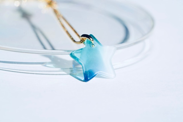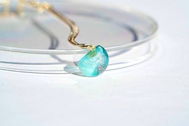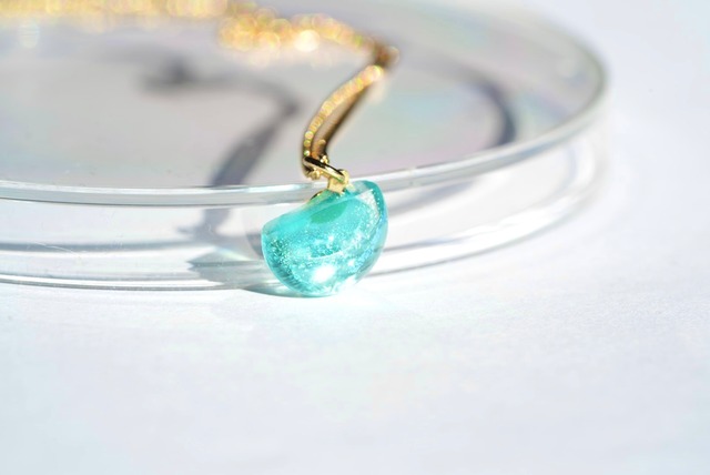 prismglass×宝石研磨職人さんのガラスアクセサリーです。 宝石研磨職人さんにお声掛けいただき、ガラスに美しい研磨を施したコラボアクセサリーを製作いたしました。 丁寧に磨かれ滑らかな断面と、首元に映し出される美しい影が洗練された印象のネックレスになっています。 使用したアンティークガラスは、昔ながらの製法で作られた特別なガラスで、海外の職人さんが1枚づつ手作りで吹いて制作したものです。吹きガラスならではの色彩の美しさや透明感をお楽しみいただけます。また、一枚の絵のような複雑な模様のガラスから切り出すかけらを使用しているので、たった一つのオリジナルのガラスです。 発送目安:10日程度
