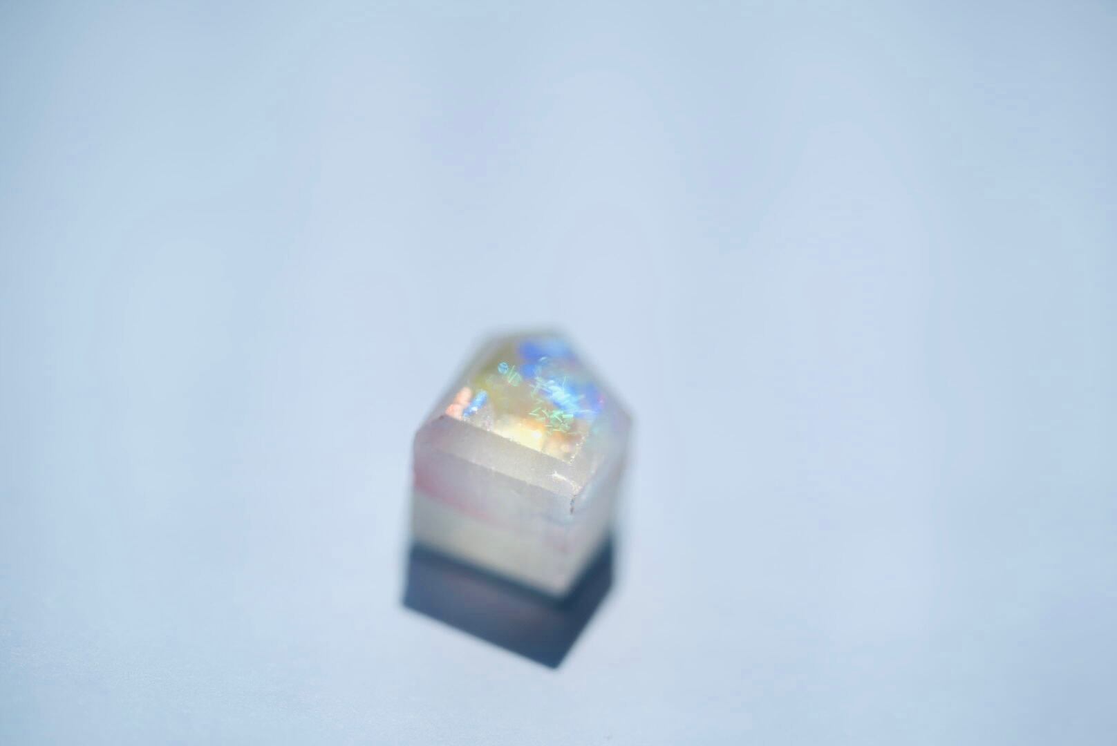 アンティークガラスの色彩と光を取り込む仕組みを採用したガラスのアートピースです。Xガラスのままご購入も可能です。このガラスはアンティークガラスのかけらと虹色ガラスのかけらを使用して色鮮やかなprismglassで色をブレンドしています。また、底面に光を集めやすい加工を施しているので、光にあたると鋭く光る部分と、柔らかくひかる部分が浮き上がります。