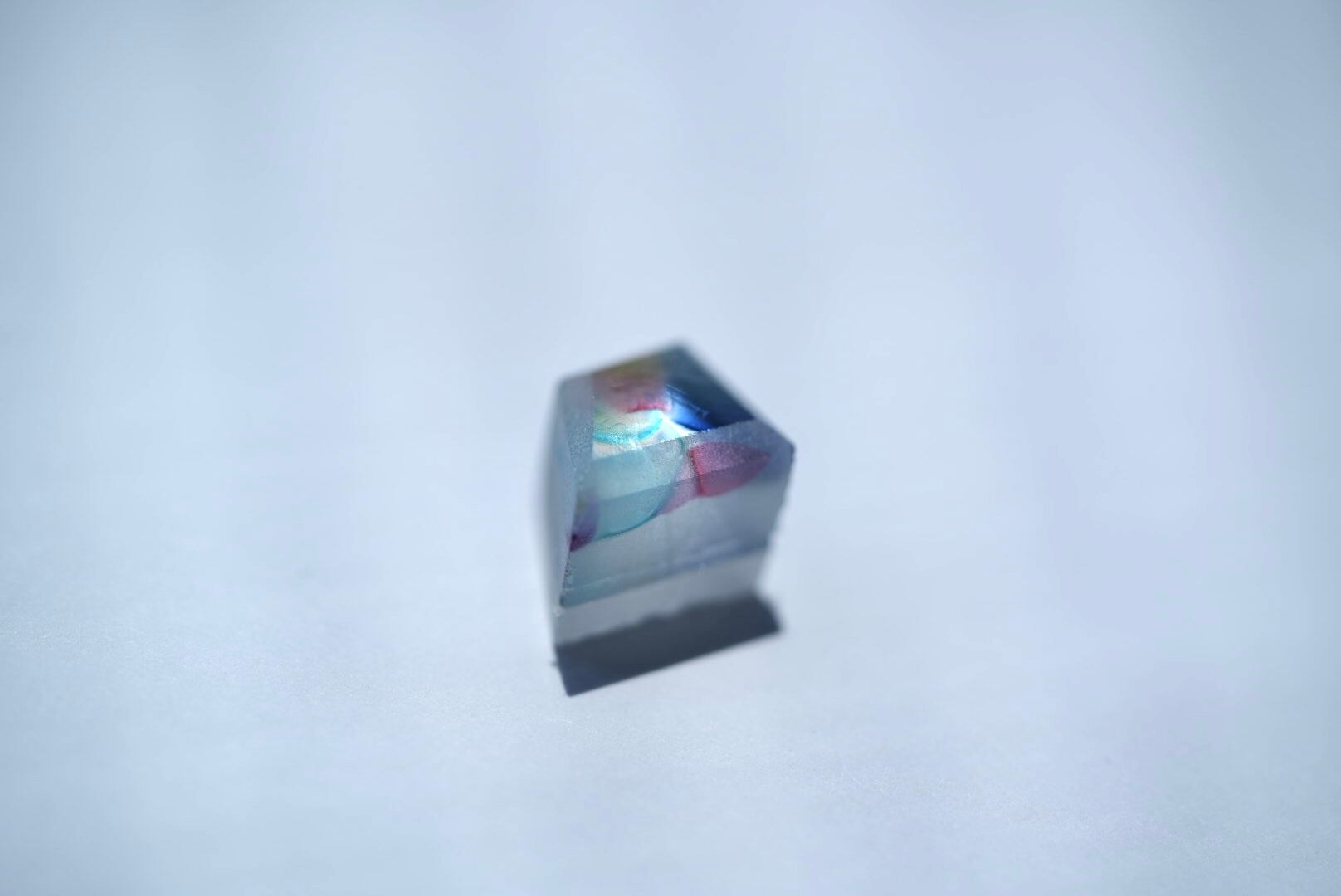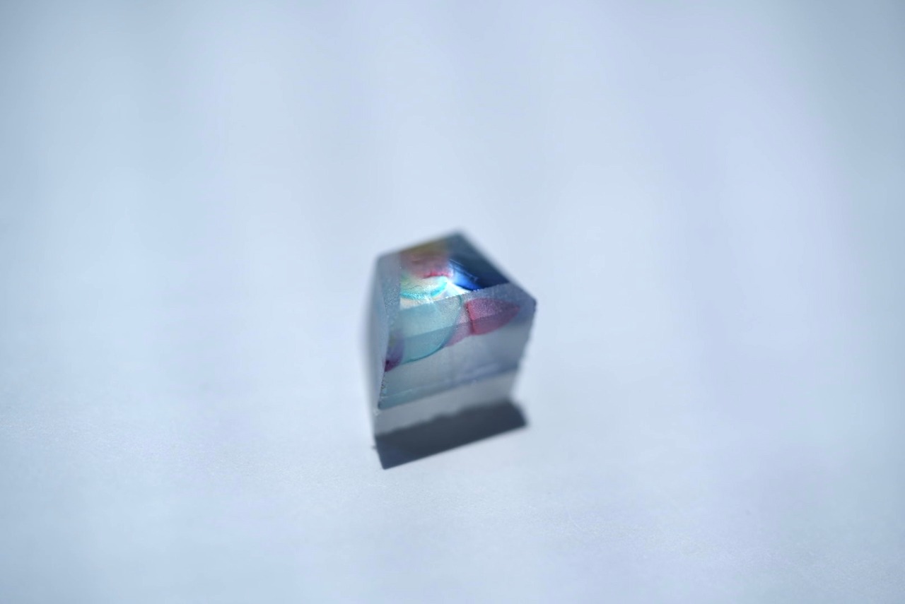 アンティークガラスの色彩と光を取り込む仕組みを採用したガラスのアートピースです。Xガラスのままご購入も可能です。このガラスはアンティークガラスのかけらと虹色ガラスのかけらを使用して色鮮やかなprismglassで色をブレンドしています。また、底面に光を集めやすい加工を施しているので、光にあたると鋭く光る部分と、柔らかくひかる部分が浮き上がります。