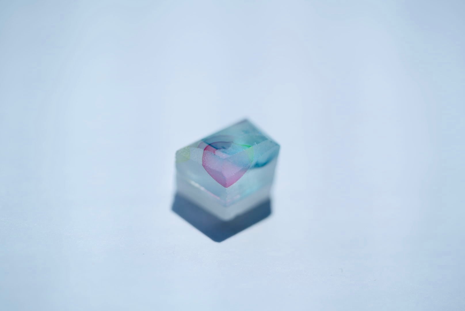 アンティークガラスの色彩と光を取り込む仕組みを採用したガラスのアートピースです。Xガラスのままご購入も可能です。このガラスはアンティークガラスのかけらと虹色ガラスのかけらを使用して色鮮やかなprismglassで色をブレンドしています。また、底面に光を集めやすい加工を施しているので、光にあたると鋭く光る部分と、柔らかくひかる部分が浮き上がります。
