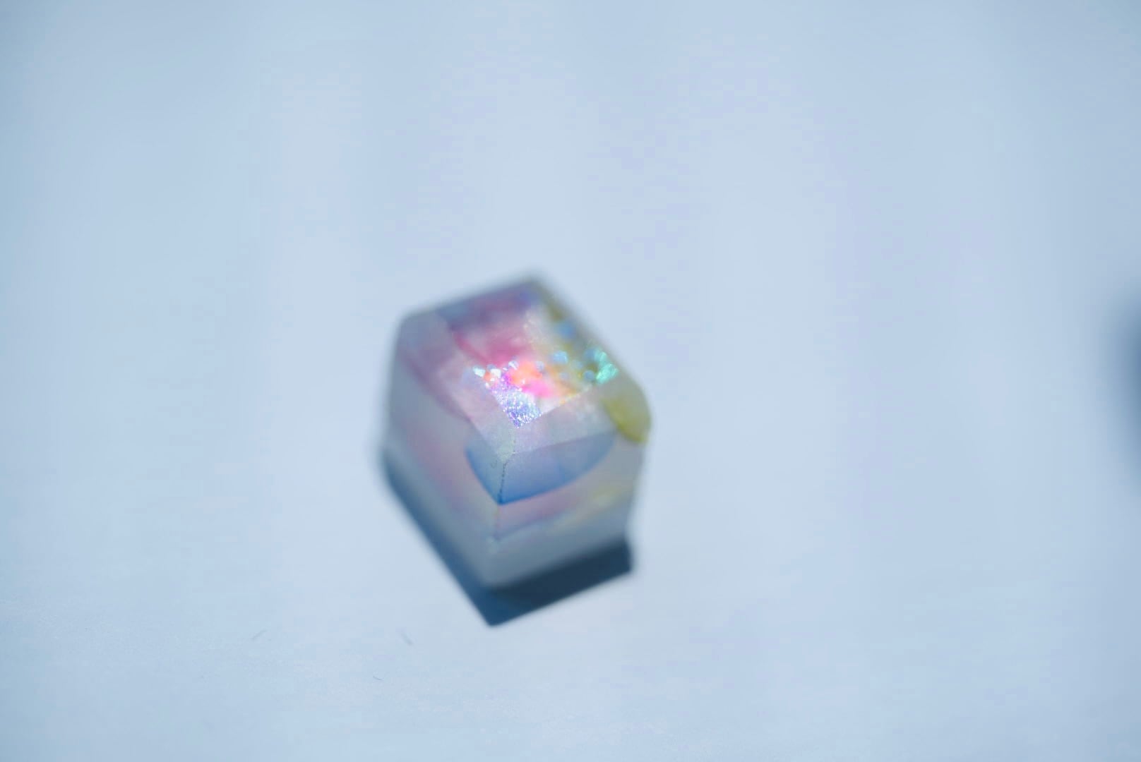 アンティークガラスの色彩と光を取り込む仕組みを採用したガラスのアートピースです。Xガラスのままご購入も可能です。このガラスはアンティークガラスのかけらと虹色ガラスのかけらを使用して色鮮やかなprismglassで色をブレンドしています。また、底面に光を集めやすい加工を施しているので、光にあたると鋭く光る部分と、柔らかくひかる部分が浮き上がります。
