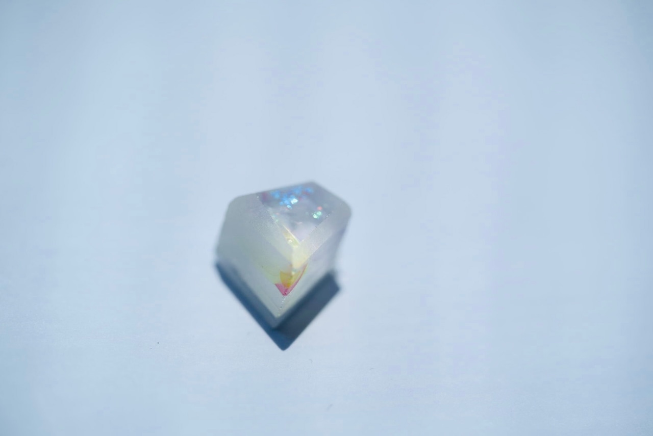 アンティークガラスの色彩と光を取り込む仕組みを採用したガラスのアートピースです。Xガラスのままご購入も可能です。このガラスはアンティークガラスのかけらと虹色ガラスのかけらを使用して色鮮やかなprismglassで色をブレンドしています。また、底面に光を集めやすい加工を施しているので、光にあたると鋭く光る部分と、柔らかくひかる部分が浮き上がります。