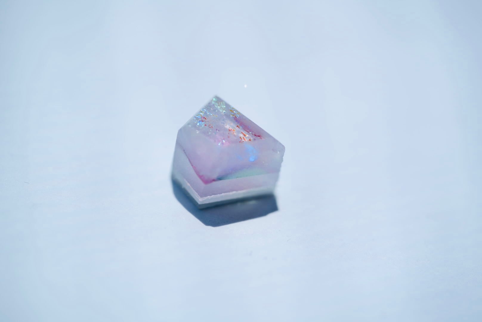 アンティークガラスの色彩と光を取り込む仕組みを採用したガラスのアートピースです。Xガラスのままご購入も可能です。このガラスはアンティークガラスのかけらと虹色ガラスのかけらを使用して色鮮やかなprismglassで色をブレンドしています。また、底面に光を集めやすい加工を施しているので、光にあたると鋭く光る部分と、柔らかくひかる部分が浮き上がります。