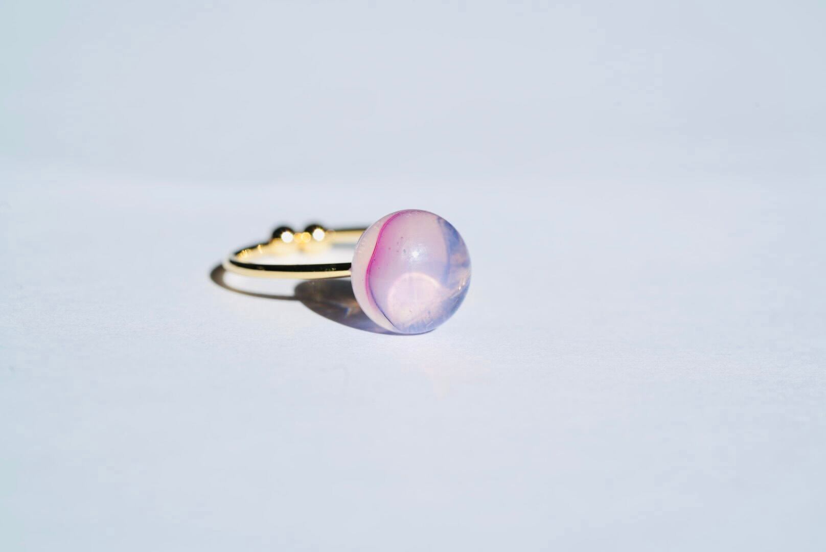 ガラスをまんまるに焼き上げた小さなガラスのリングです。