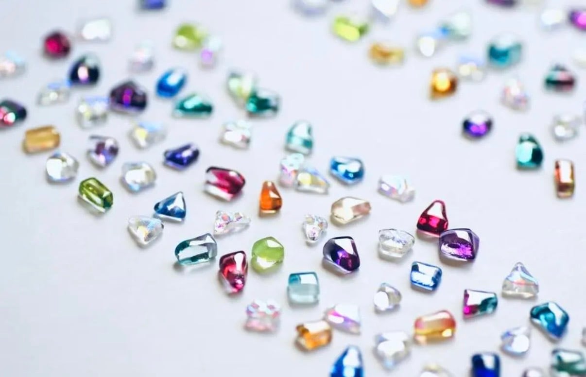 prismglassの1番小さなイヤリングのかけら(多角形)1ペア(2個)のセットです。小さくてとても使い勝手がよく、つけていてもあまり気にならないサイズ感とキラッと煌めくガラスの光沢が特徴です。