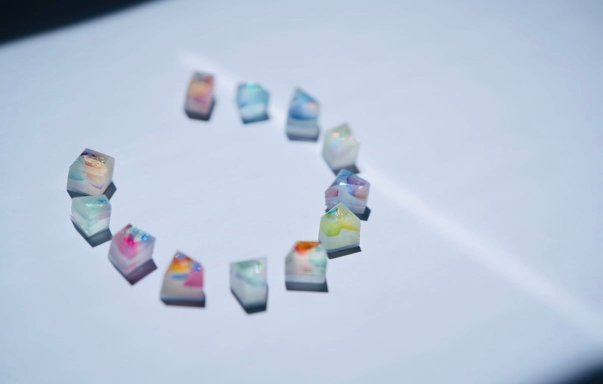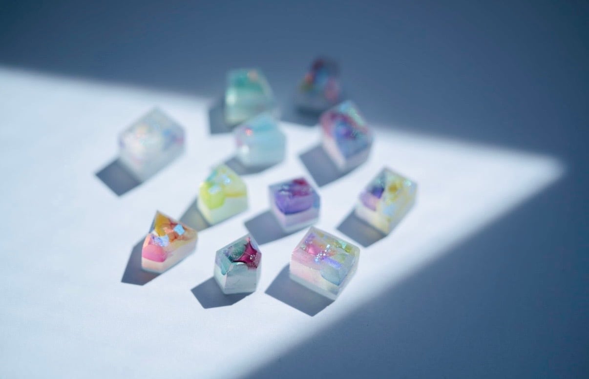 一枚の絵画のようなガラスから板を切り出しているので、同じ色は存在せず類似した色あいのなかにもたくさんの色味が楽しめることが特徴です。
