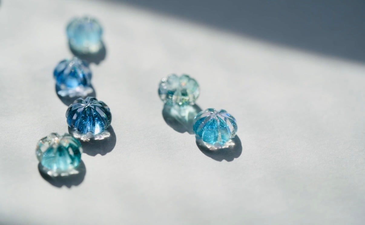 この福袋では、そのようなアンティークガラスの美しいカケラを使用した様々な形のガラスアクセサリーを用意しております。